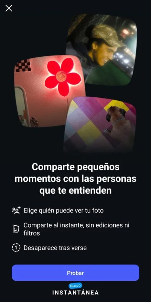Las Instantáneas son un formato efímero pensado para compartir momentos tal cual y como ocurren: sin filtros, sin edición y sin postureo. Se trata de publicaciones que: